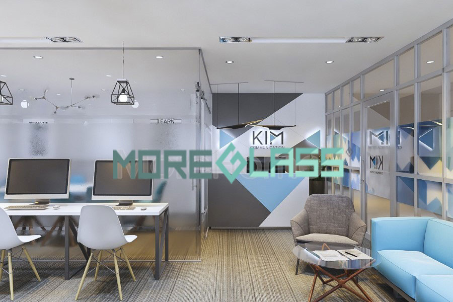 Vách kính văn phòng Kim Communication được Moreglass sử dụng vách kính cường lực cửa trượt, vách kính cường lực 180 độ cho không gian phòng làm việc, phòng họp, phòng nhân viên. Với thiết kế thông minh văn phòng nhỏ được chúng tôi tân trang hiện đại, tiện nghi.