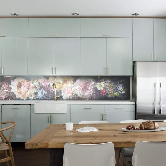 Tranh kính ốp bếp hoa mẫu đơn được gia chủ lựa chọn làm đẹp cho không gian khu bếp. Bằng cách phối hợp màu nhẹ nhàng tinh tế trắng - hồng - đỏ bức tranh được thể hiện sự quý phái, đẳng cấp.