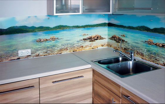Mẫu in tranh kính UV đề tài về biển thực hiện trên nền kính 10ly, chống chịu nhiệt thích hợp làm kính ốp bếp cho nhà ở hiện đại. Mẫu ảnh rõ nét thể hiện chân thực vách đá và biển sống động.