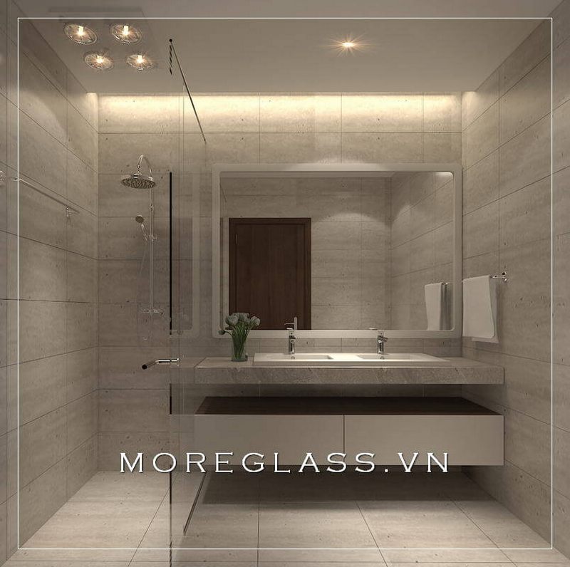 Nhà tắm và nhà vệ sinh được thiết kế thông minh với việc sử dụng vách kính cường lực trong suốt để ngăn cách, tạo nên một không gian sử dụng tiện nghi, sang trọng.